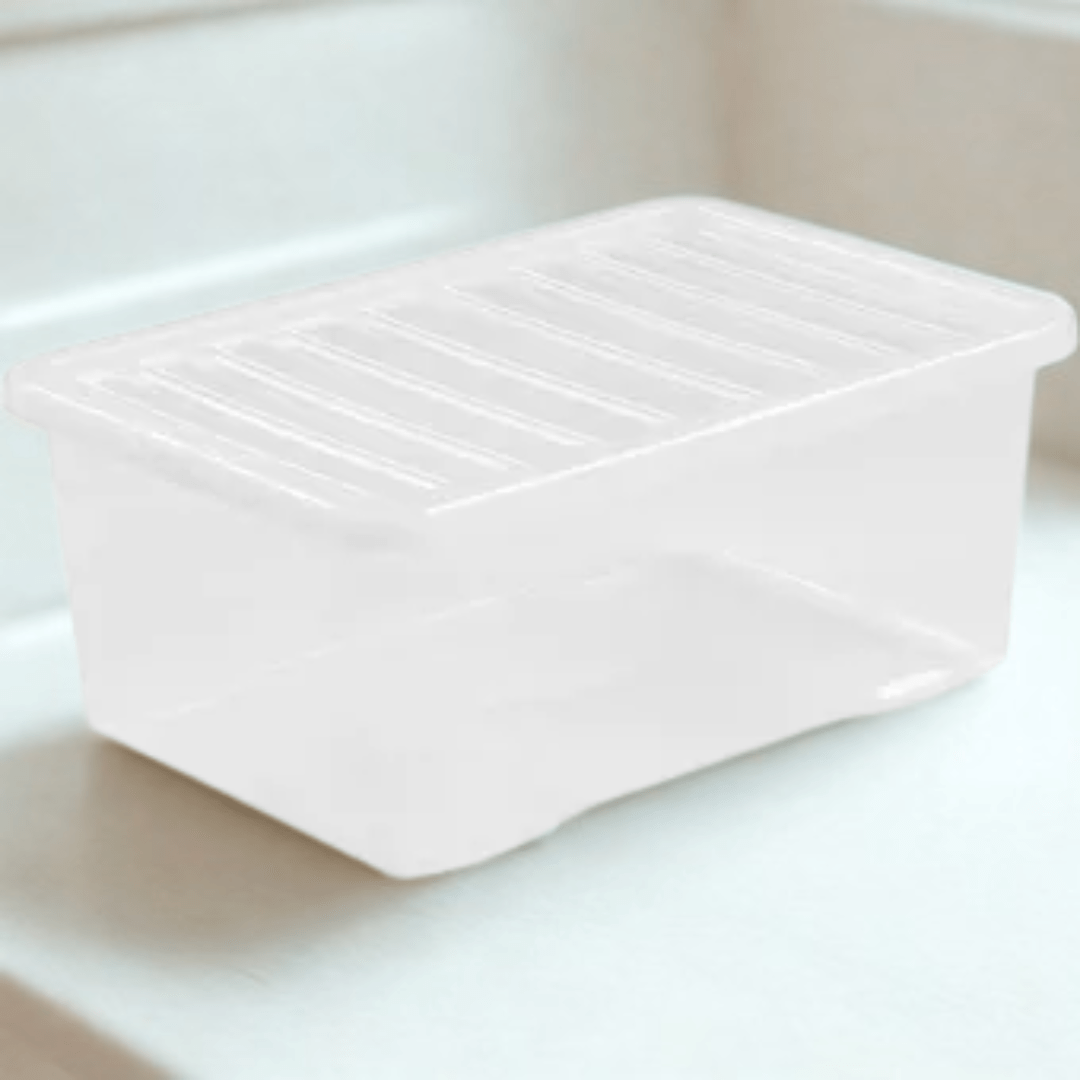 45L Clear Plastic Storage Box with Wheels & Lockable Lid